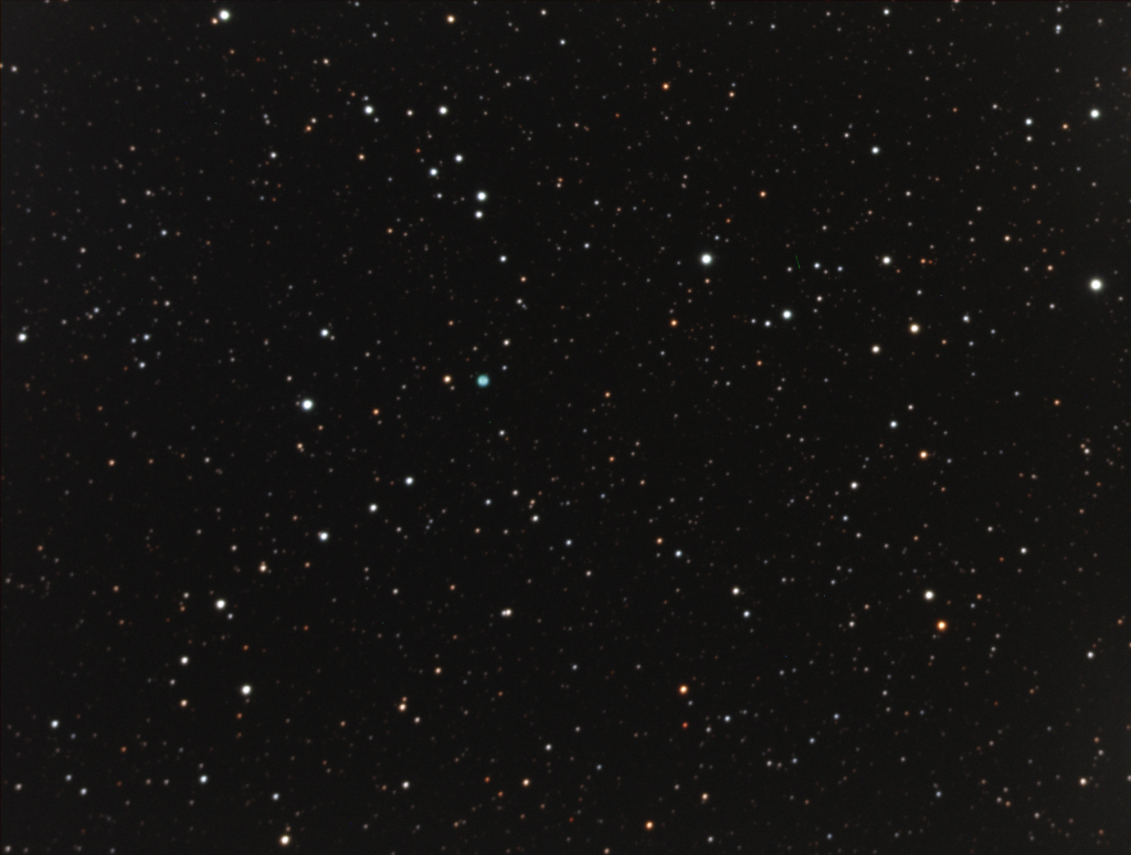 IC1747, ein kleiner Planetarischer Nebel im Sternbild Kassiopeia, ist auf meinen Aufnahmen mit dem C9.25 in der f/10-Konfiguration auf den Roh-Aufnahmen überhaupt nicht von anderen Sternen zu unterscheiden, da die Sternscheibchen die gleiche Größe haben wie der Nebel.