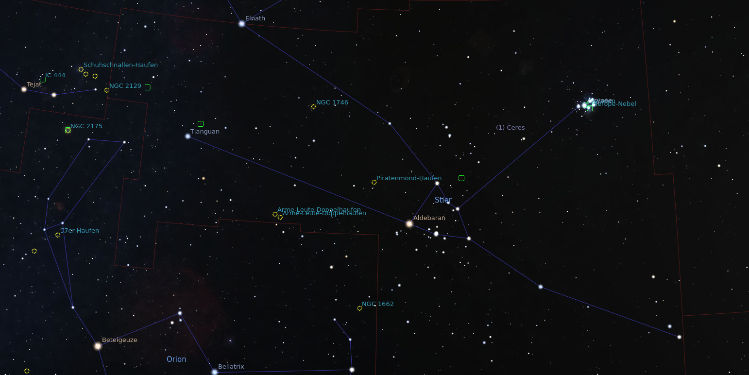 Sternbild Stier, dargestellt mit Stellarium