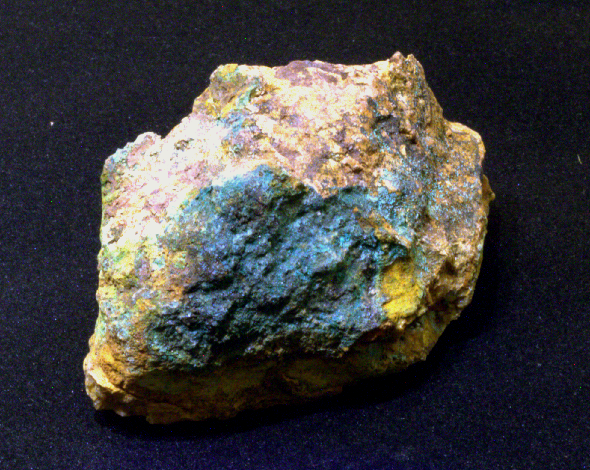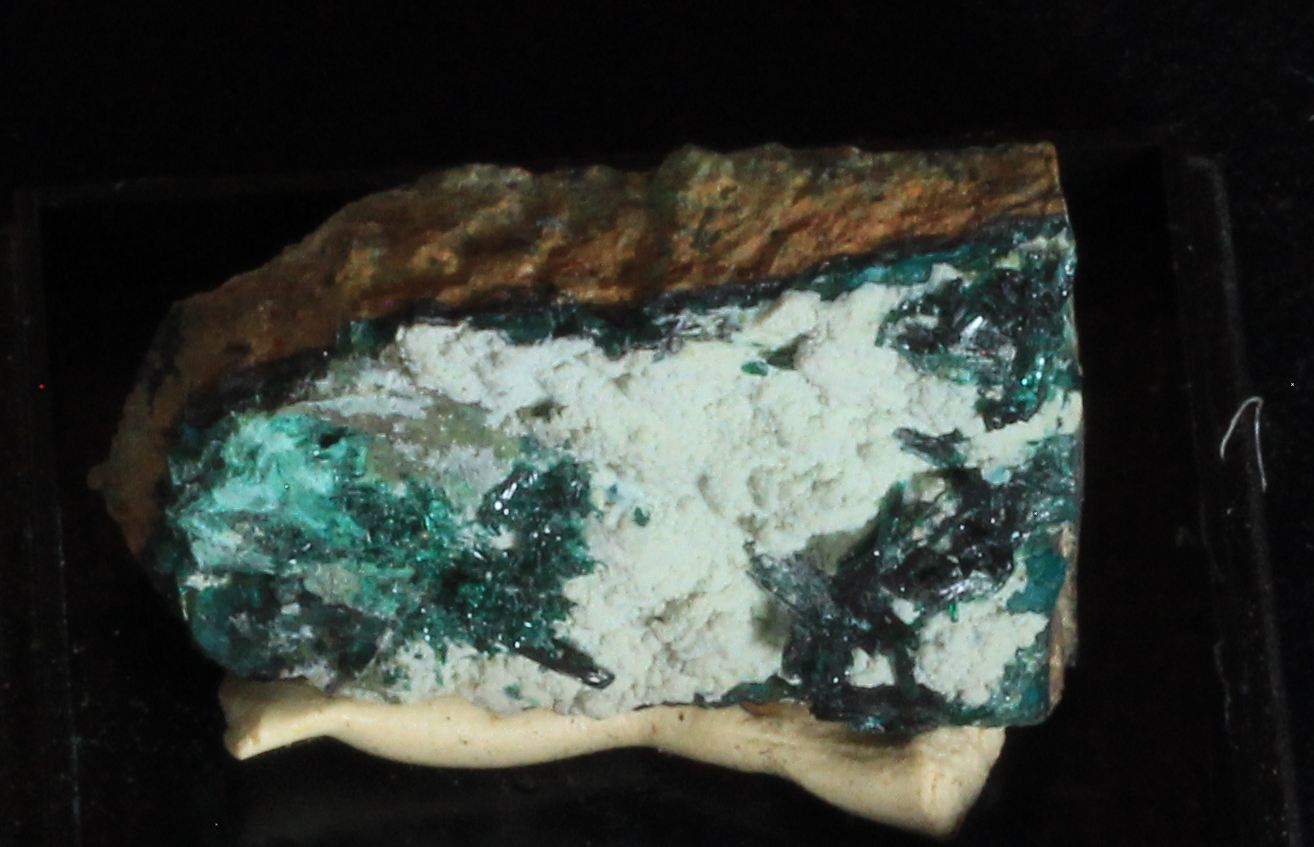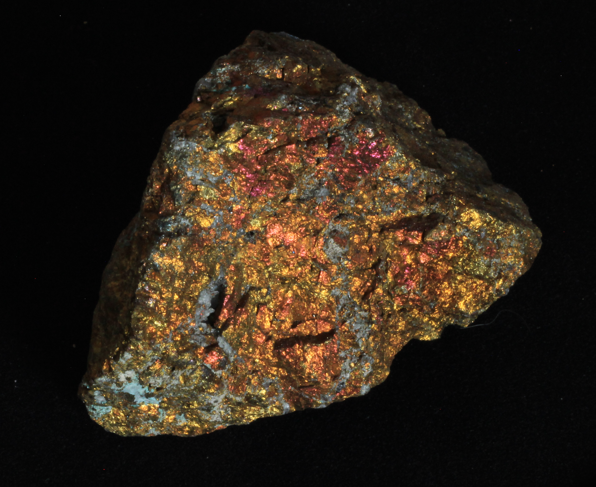 Kupfermineralien [Cu, 29]. Kupfer bildet mit die buntesten und schönsten Mineralien aus. Vorherrschende Farben sind grün und blau, im Chalkopyrit (CuFeS2) bildet es einen wunderschönen, goldenen Glanz aus.