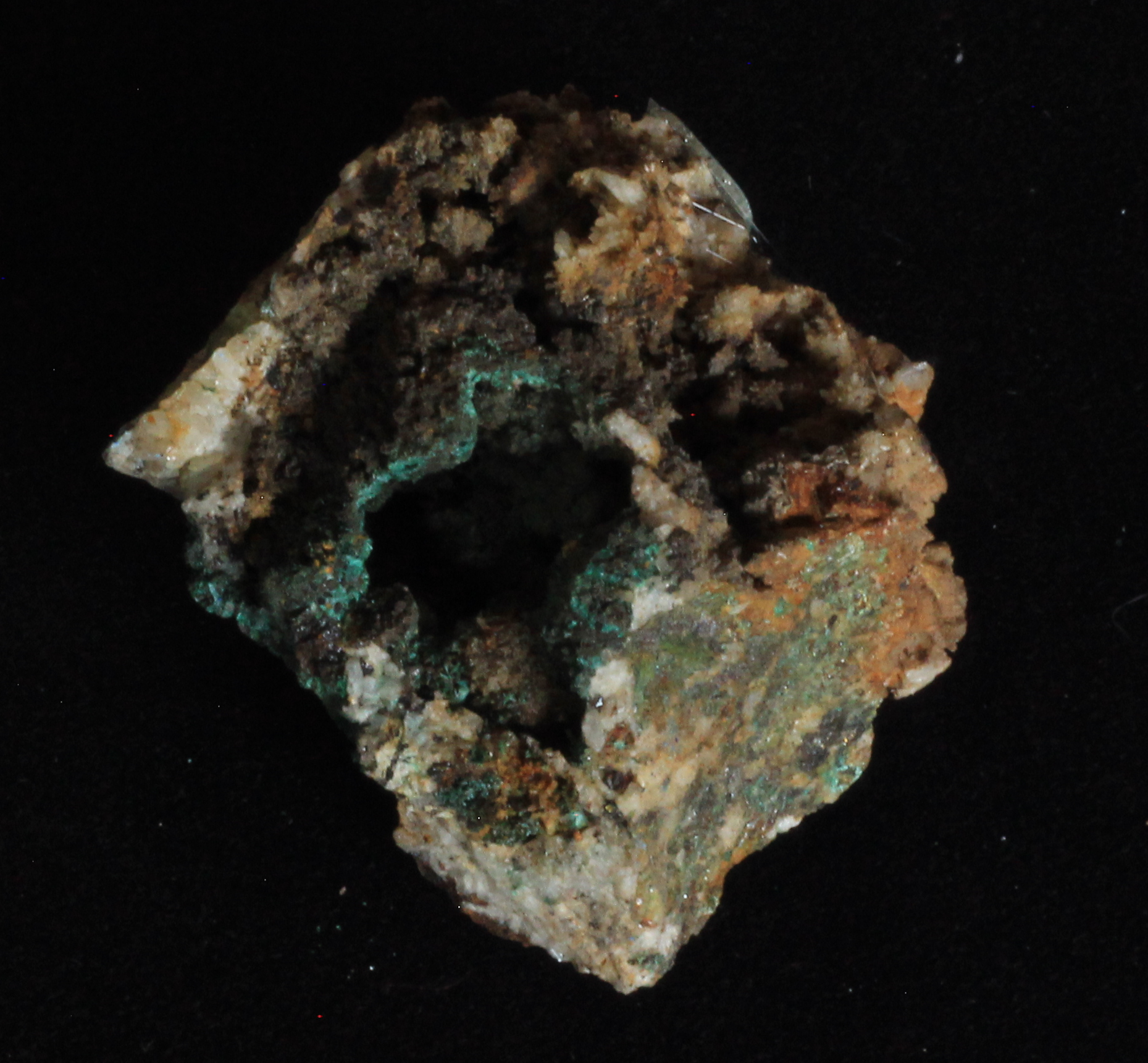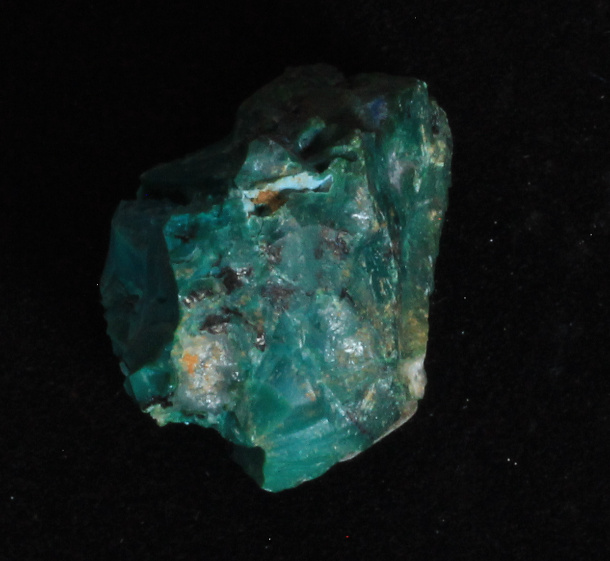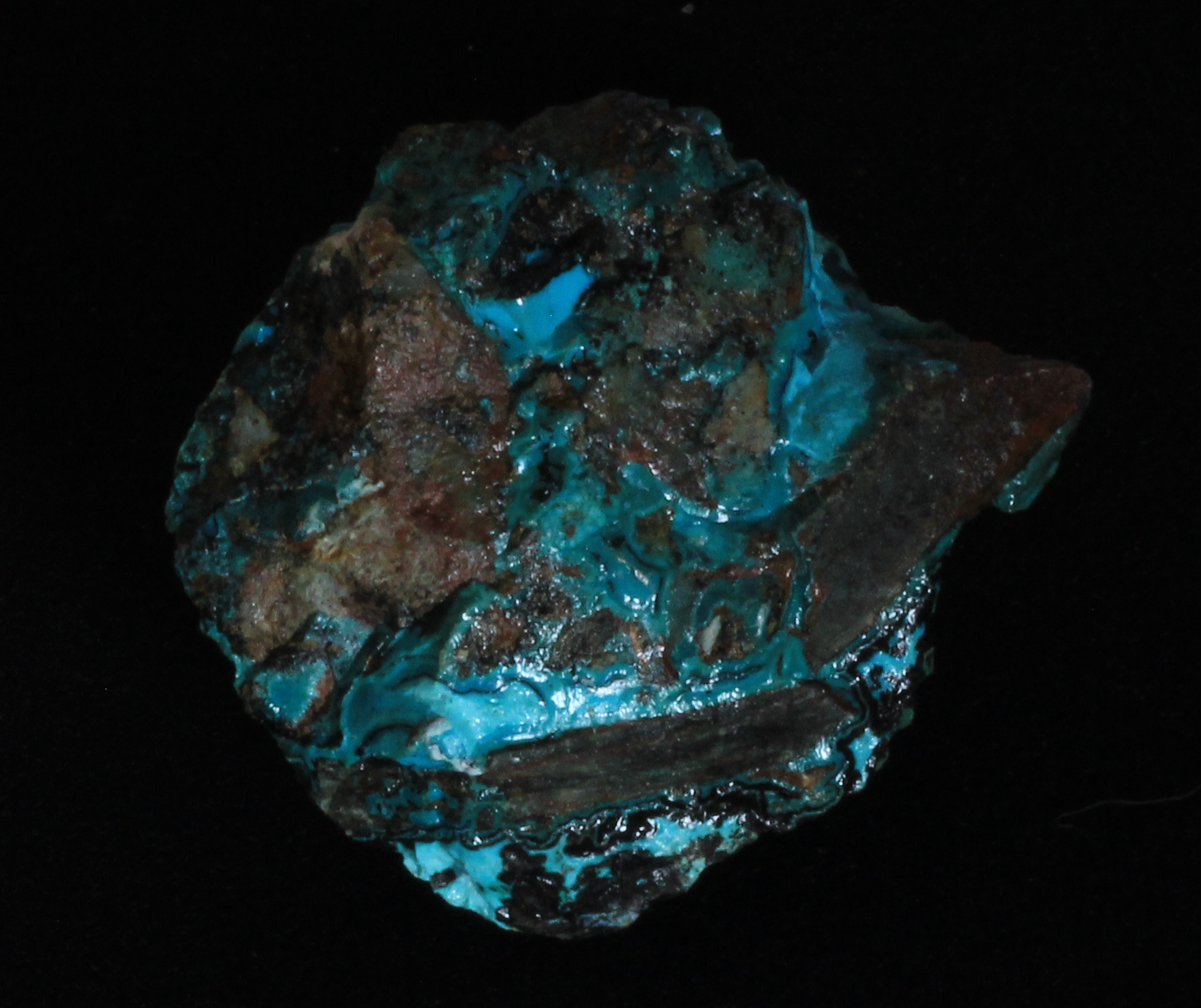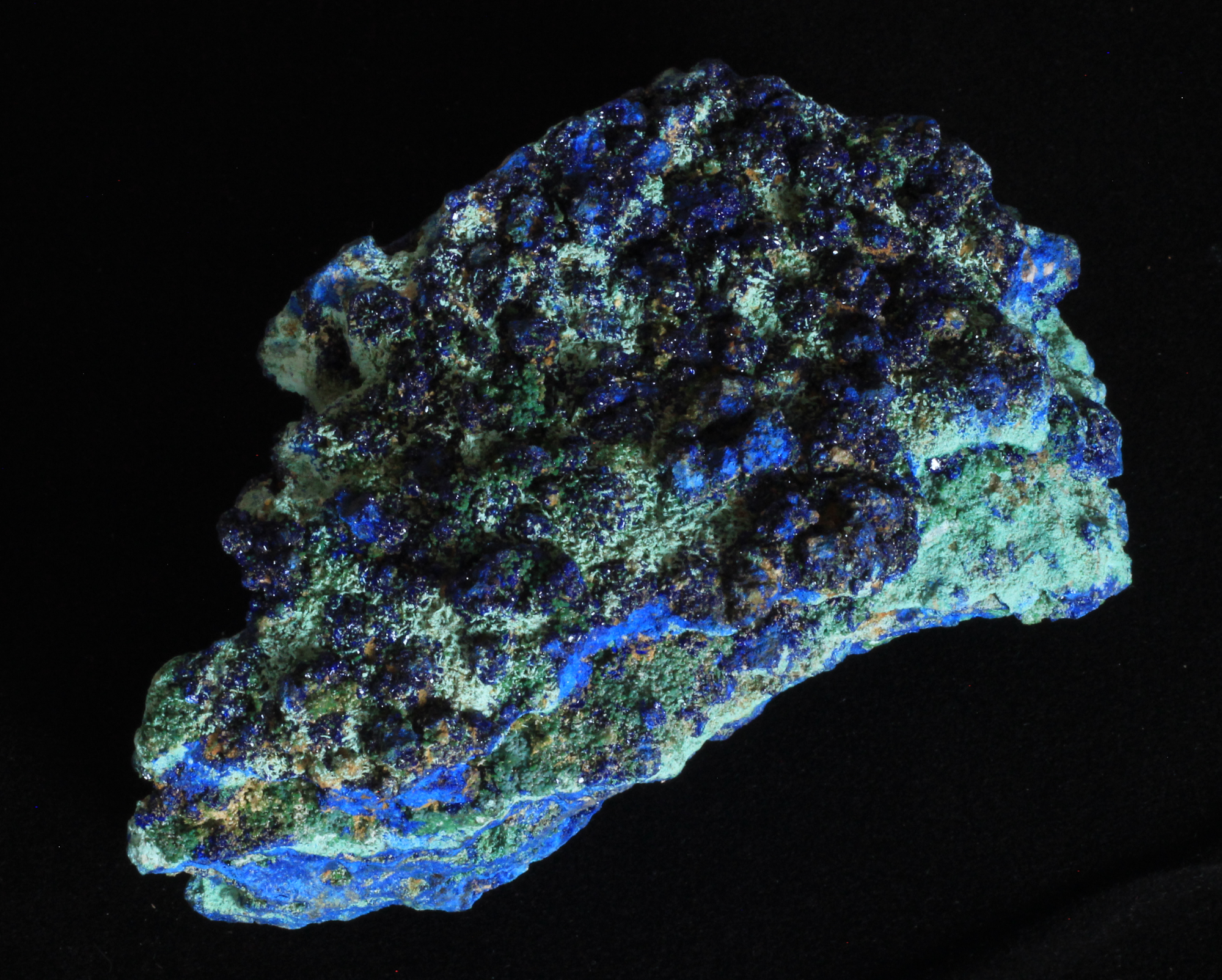 Kupfermineralien [Cu, 29]. Kupfer bildet mit die buntesten und schönsten Mineralien aus. Vorherrschende Farben sind grün und blau, im Chalkopyrit (CuFeS2) bildet es einen wunderschönen, goldenen Glanz aus.